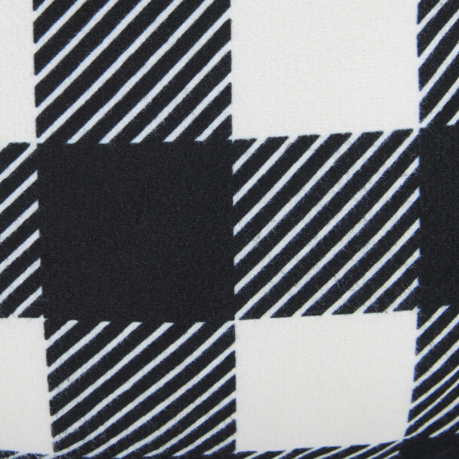 - Black-and-white buffalo check print adds a touch of cold-weather flair just in time for the cooler seasons.