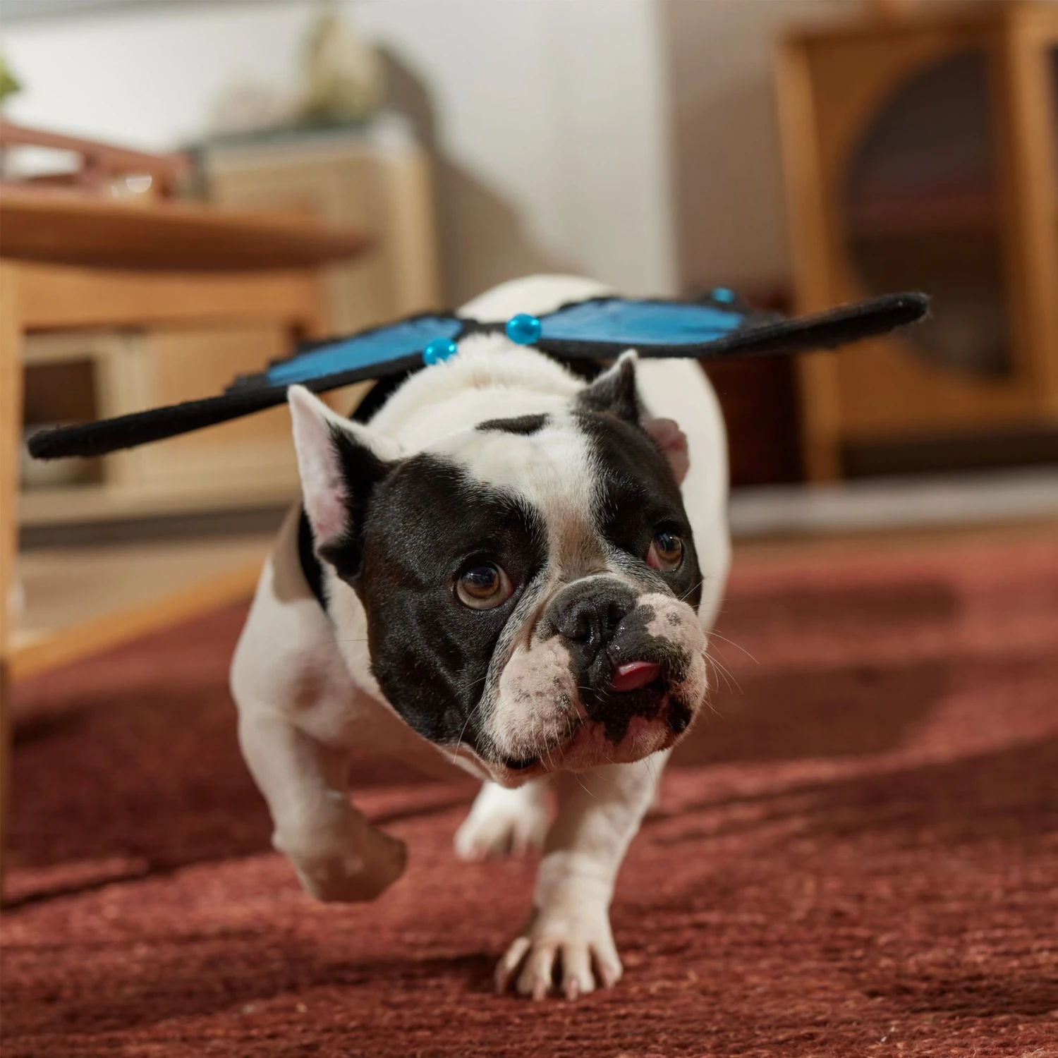 Remember to measure your pet for the paw-fect fit. Your pet’s ready for flight with this magical butterfly costume from Frisco by Chewy. The iridescent, flocked fabric wings offer an intricately delicate costume that’s still comfortable enough for your pet to feel fluttery. Hook-and-loop fastening at the neck and belly makes it conveniently quick to put on, while also keeping the wings securely in place while your social butterfly enjoys the party, the park, or wherever they want to be winged.