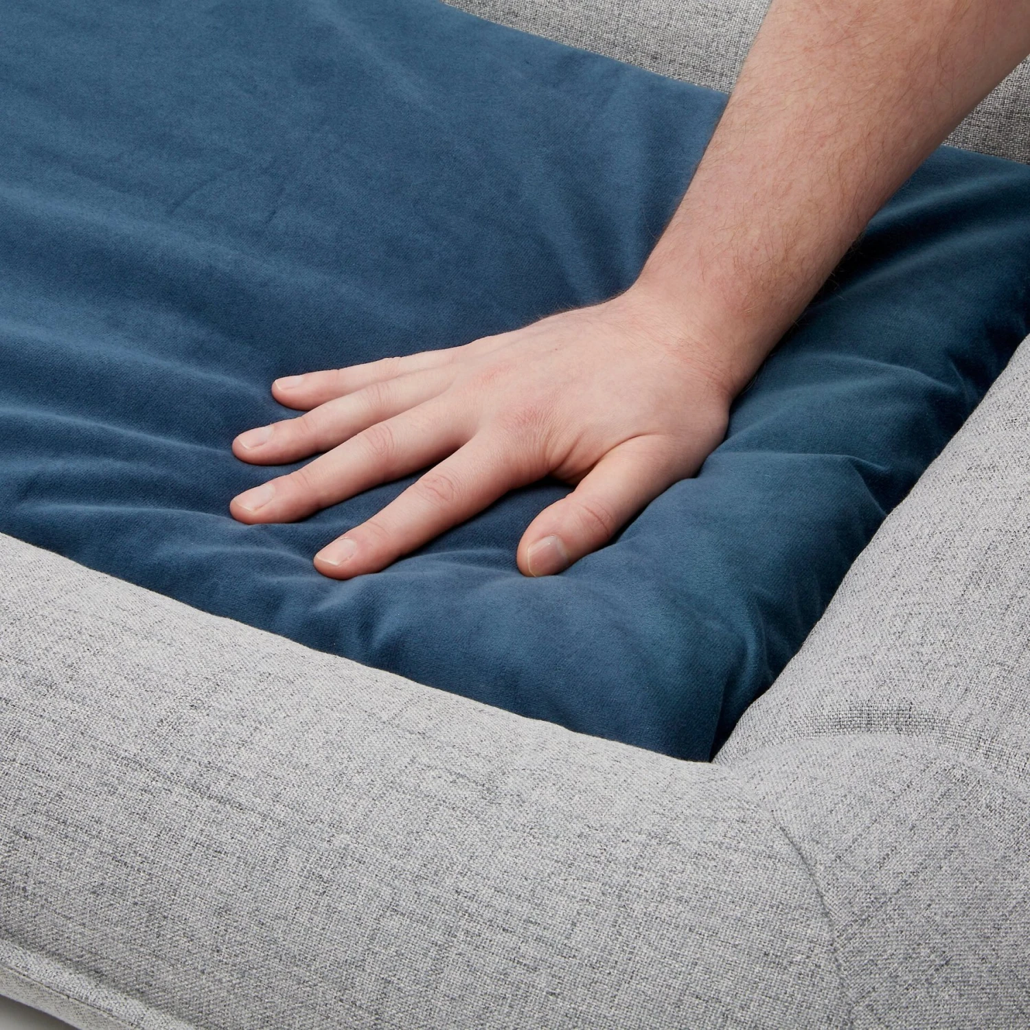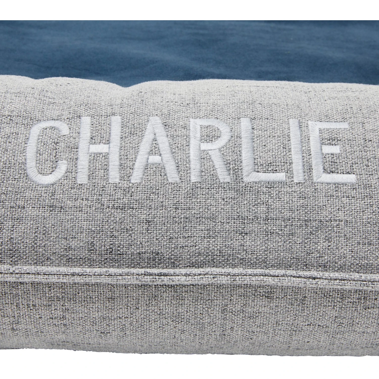 The Frisco Faux Linen Orthopedic Bed is so comfy your dog will want to put their name on it! It’s the ideal low profile bed for large dogs that love to stretch out, plus you can personalize it so everyone knows it’s your four-legged friend’s favorite spot. The center orthopedic foam topped cushion provides your dog extra support while the outer bolsters are filled with premium loft fiber for superior comfort. This two-tone fabric design features a stylish faux linen outer fabric that looks great in any home with a soft, plush microfiber interior fabric your fur friend will love to snuggle up to. When it’s laundry day, the removable cover with YKK zipper makes it easy to machine wash and dry so your pal doesn’t have to go a day without their cozy snooze pad.