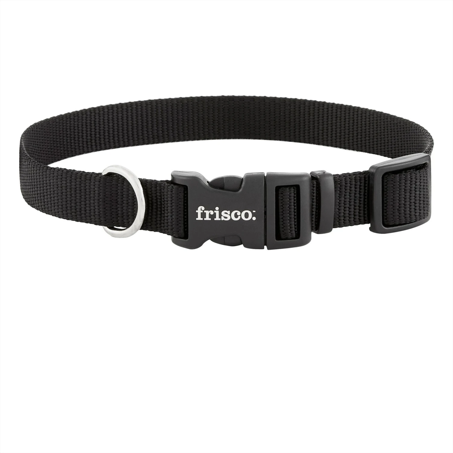 Frisco Solid Nylon Dog Collar, Black, Medium: 14 to 20-in neck, 3/4-in wide — Remember to measure your pet for the paw-fect fit. The Frisco Solid Nylon Dog Collar is a classic yet stylish collar that comes in a variety of colors and sizes so you can find just the right one for your dog. Designed for everyday wear, this collar prepares your pup for adventures outdoors and provides comfort and security during your daily walks.