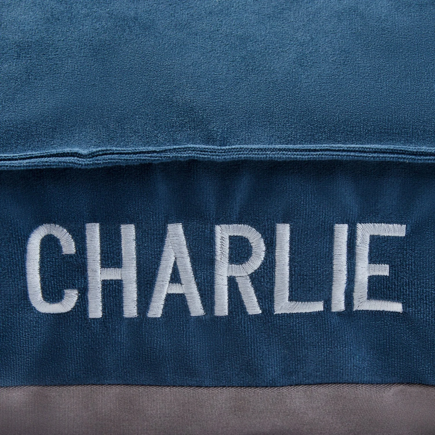 Make naptime personal for your dog with the Frisco Personalized Navy Bolstered Bed! This single-side, back bolster-style bed features a soft, microfiber cover, a supportive bolster with a navy-checkered pattern and lots of lofted polyfill inside. It’s customizable with up to 10 embroidered characters in your choice of white or light gray thread, and flair script or block caps font. It literally has your pet’s name on it! Plus, there’s no need to worry if it gets a little dirty—just unzip the YKK zipper and give the machine washable cover a spin to keep it clean, comfortable and inviting, nap after nap.