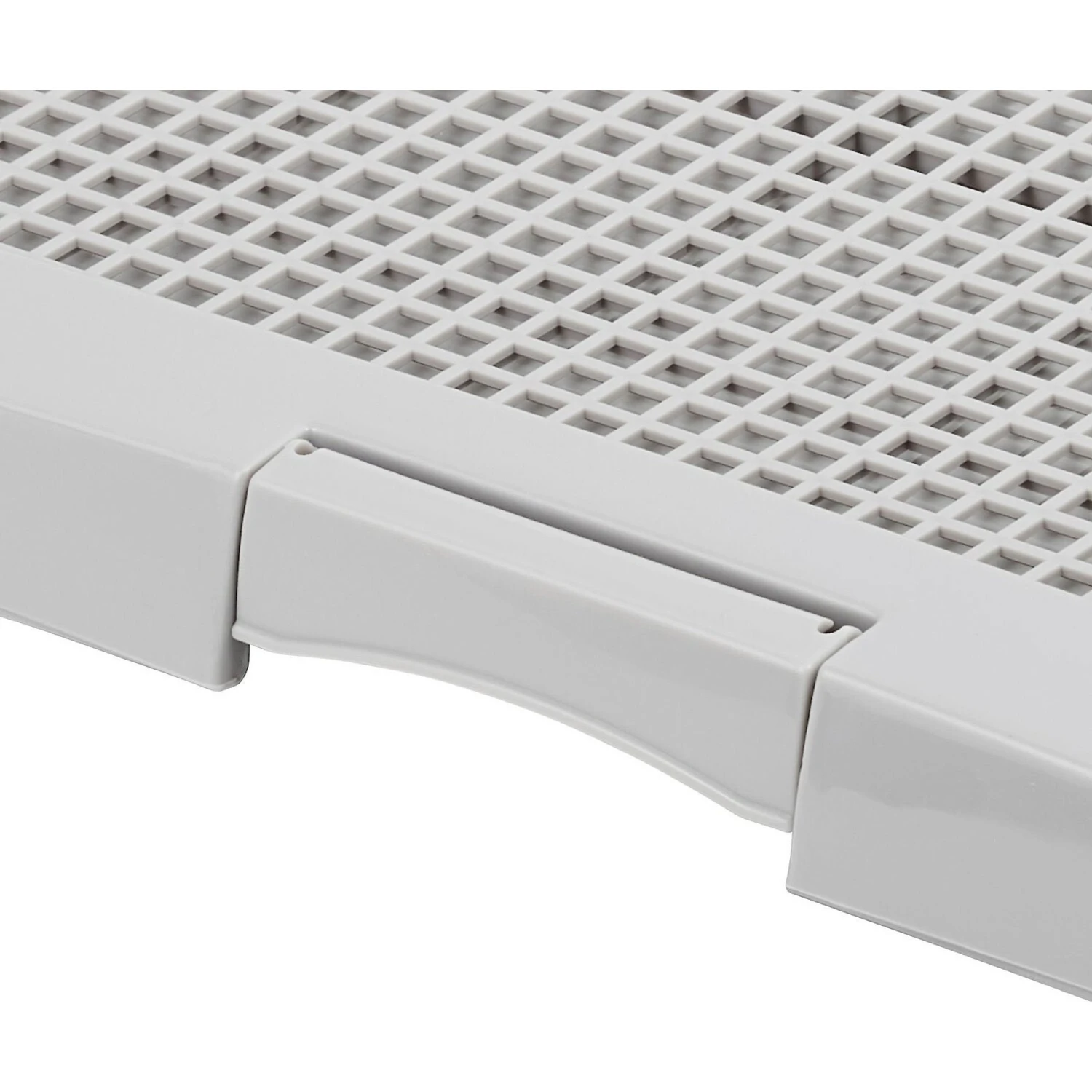 Place and keep potty pads in place with the Frisco Training Pad Holder + Frisco Dog Training & Potty Pads. This holder makes sure your pup’s training pad is always right where it needs to be. It’s elevated to help protect your floors and includes rubber feet to prevent sliding. The mesh cover feature goes over the pad to discourage your dog from tearing up his potty spot. Plus, the perforated grate helps keep your pup’s feet dry and clean while holding the training pad beneath him when he does his duty. The included potty pads have an effective built-in dog attractant that’s ideal for training puppies but also entices indoor pets so they know exactly where to go. With five layers of protection to lock in wetness, a leak-proof plastic lining and a fast-drying quilted top layer to prevent tracking, these pads absorb the mess to ensure your floors and the surrounding areas stay dry.